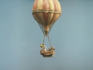 Toad's hot air balloon finally arrives, and Badger thinks it will be a good way to survey the approach of the railway. However, when Toad packs a huge hamper to take up with him, only Mole is left to help. The henchman weasel has fallen asleep in the basket, and as Mole tries to carry the hamper he trips over the rope and the balloon begins its ascent. Mole drives along in Toad's car, following the balloon across the countryside. Up in the air, Toad takes photographs of the railway as the henchman tries not to be sick. With too much weight, the balloon starts drifting downward towards a lake. With all the sandbags released, Toad and the henchman fight over who should jump out. Toad pulls the wrong lever and the balloon crashes down into a tree. Examining the developed photographs, Badger is pleased with Toad's efforts.